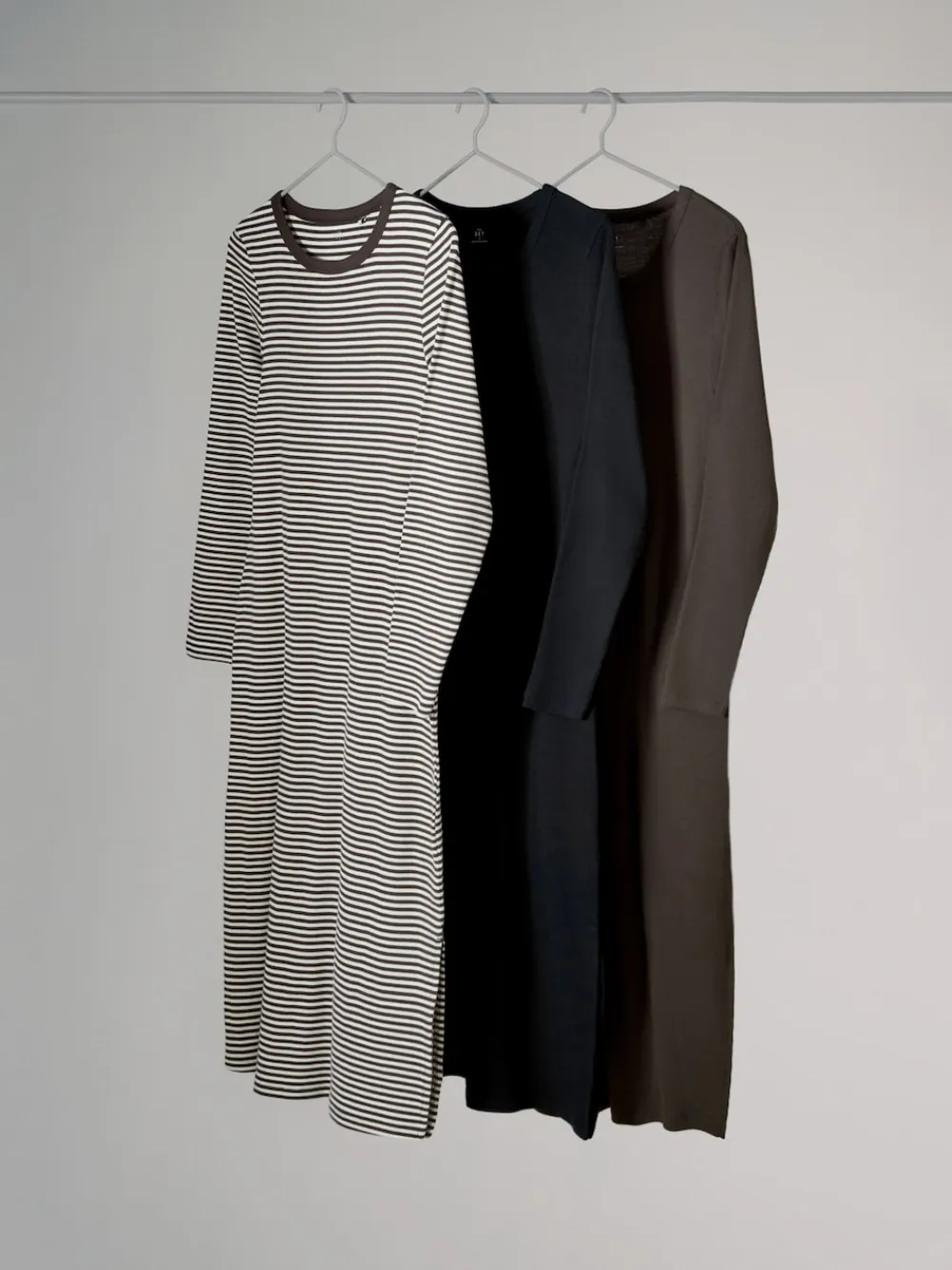 The Set 3 Pack Ribbed Long Sleeve Midi Dresses Navy/Khaki/Stripe Best