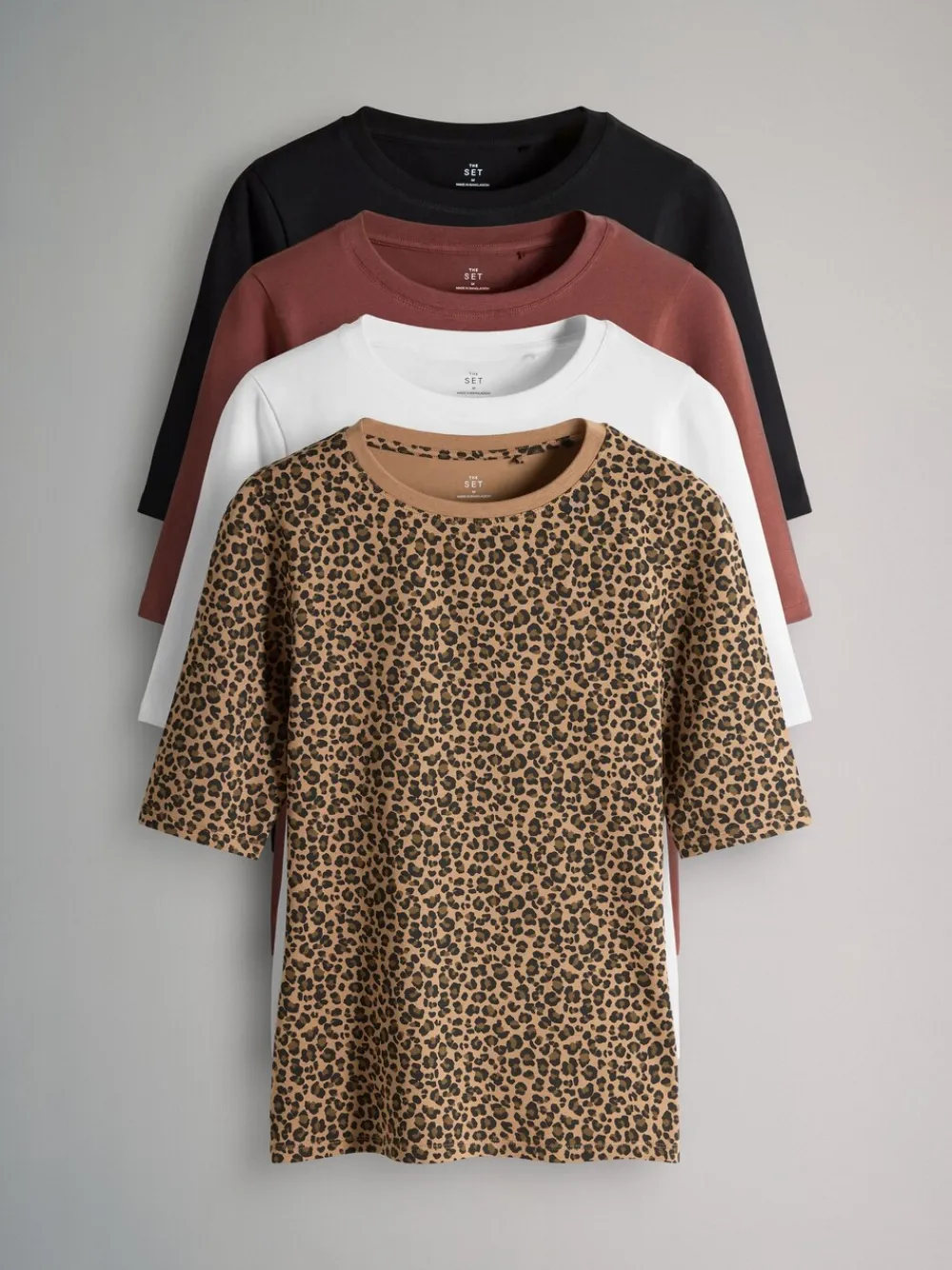 Be the first to review “The Set 4 Pack Half Sleeve Fitted Crew Neck T-Shirts Black/White/Animal/Pink” Cancel reply