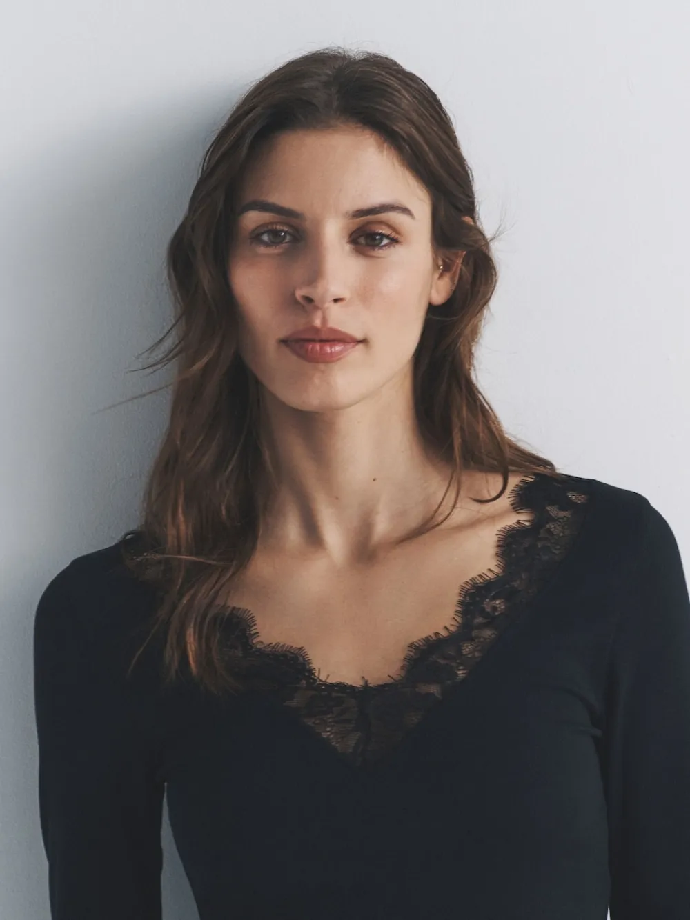 Be the first to review “The Set 4 Pack Long Sleeve V-Neck Ribbed Lace Trim T-Shirt Black/Chocolate Brown/Taupe Brown/Cream Discount” Cancel reply