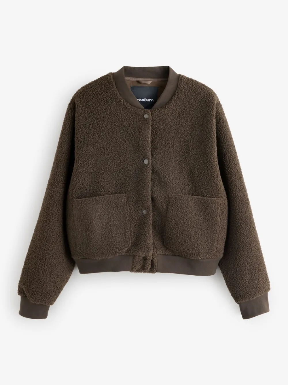 This classic bomber shape in a borg fabric for extra warmth from Threadbare is the must-have style this season. Our bomber jacket is made from a cosy borg fleece and has two front patch pockets for storing your essentials. Ribbed cuffs, hem and baseball neck provide a snug fit, and it fastens at the front with press studs. Pair with our leopard print jeans and trainers for a versatile transitional outfit perfect for walks or casual weekends. Model wears UK size 8. Machine washable. 100% Polyester.