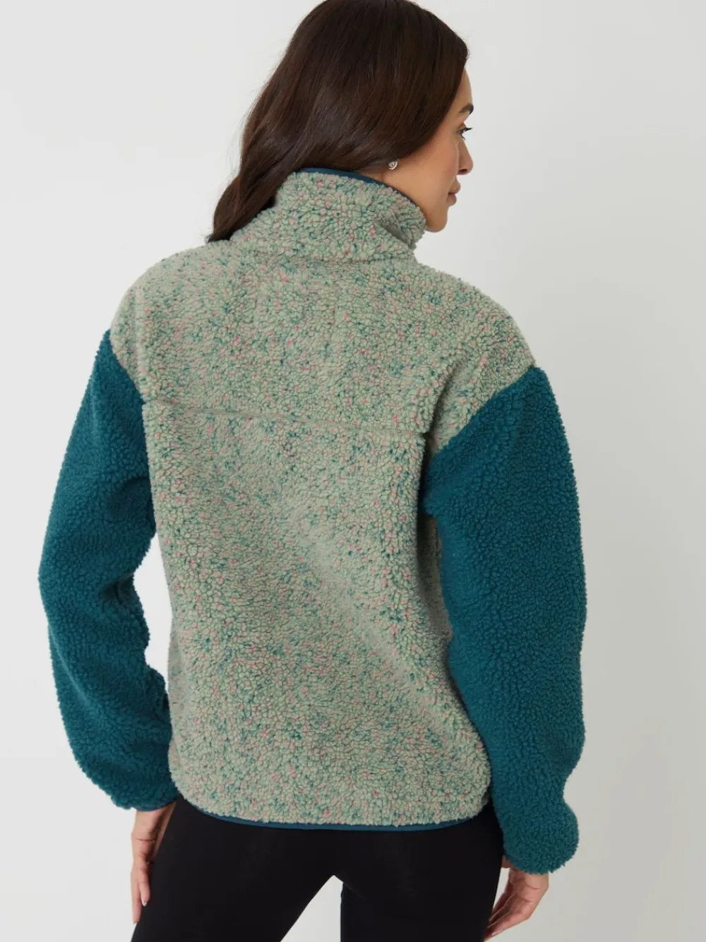 Threadbare Colourblock Snap Borg Fleece Green Online
