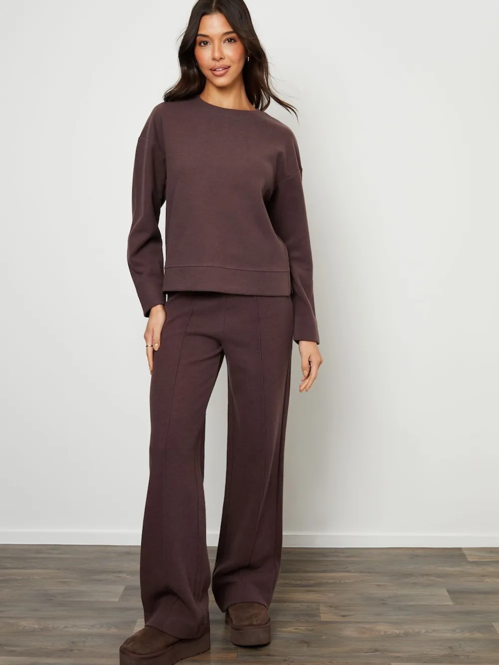 Threadbare Cosy Rib Pull On Wide Leg Joggers Brown Online