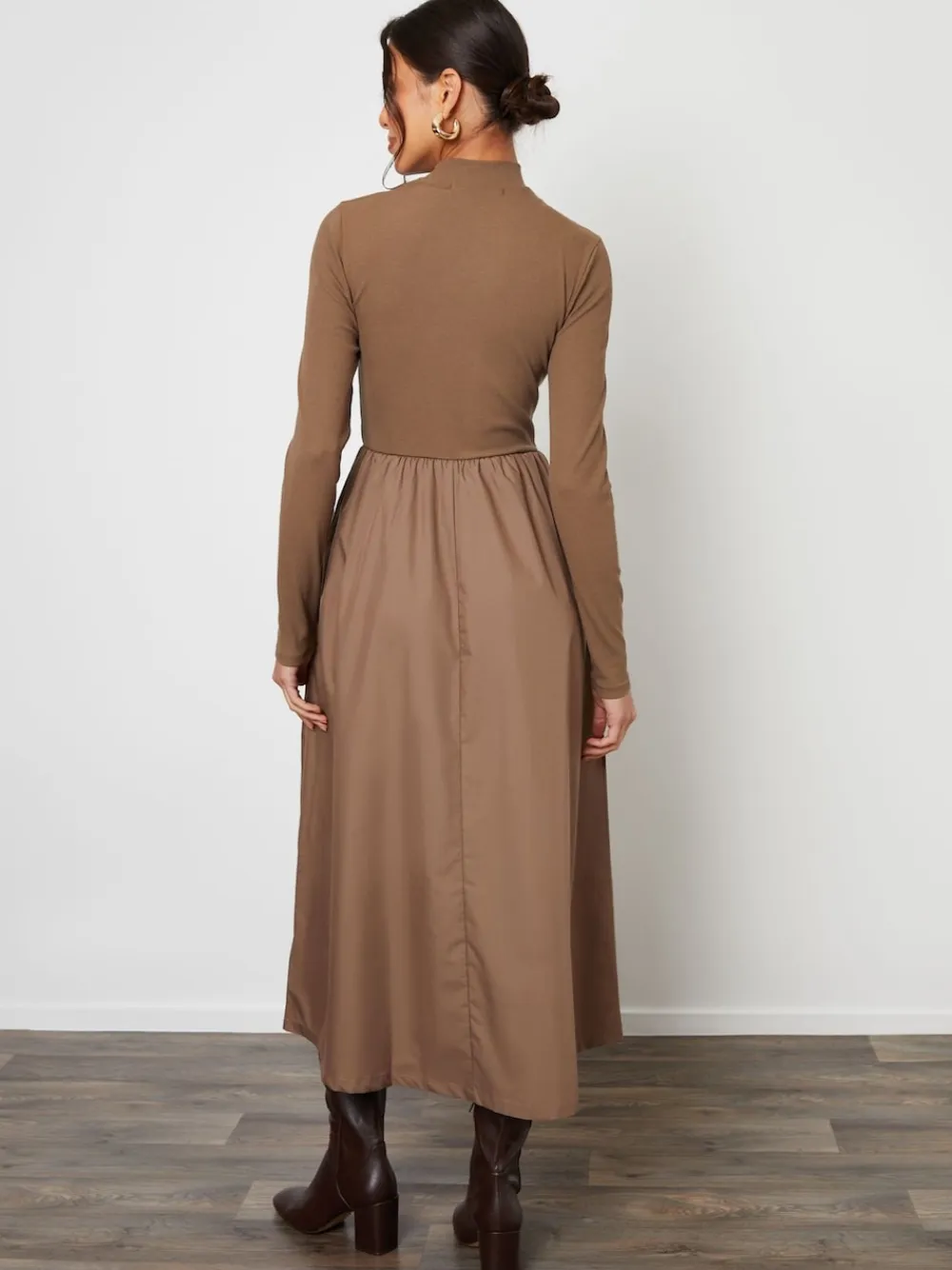 Threadbare High Neck 2 In 1 Jersey Poplin Mix Mini Dress Brown Sale