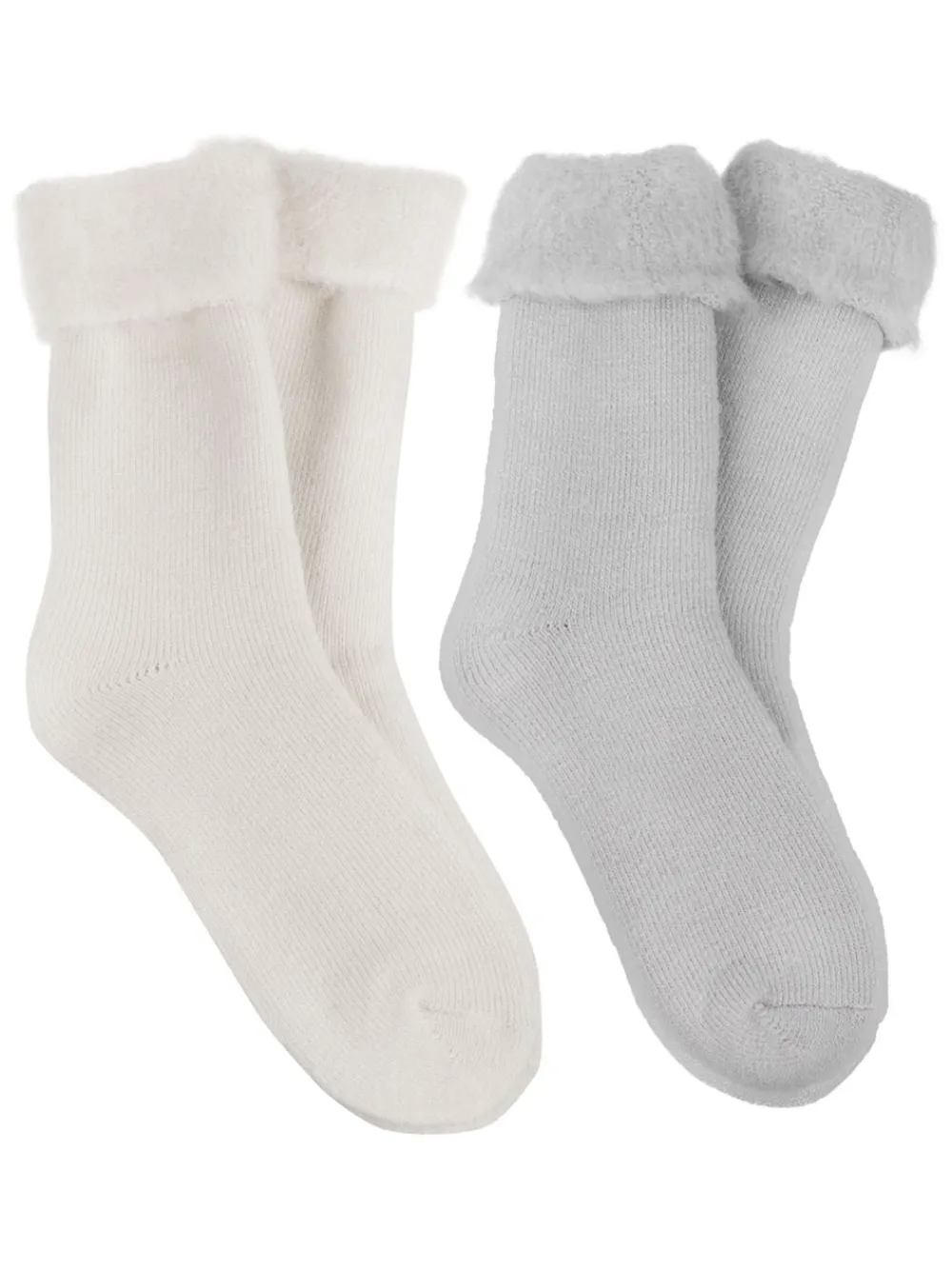 In a handy two-pair pack (one grey, one oat), bedtime is sorted in these lovely warm bed socks; the brushed inner guarantees warmth and cosiness for the chilliest night-time feet! Machine washable. 91% Acrylic, 9% Nylon.