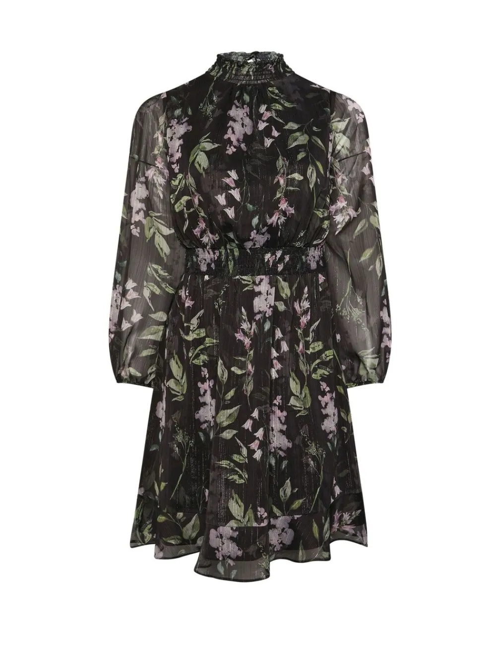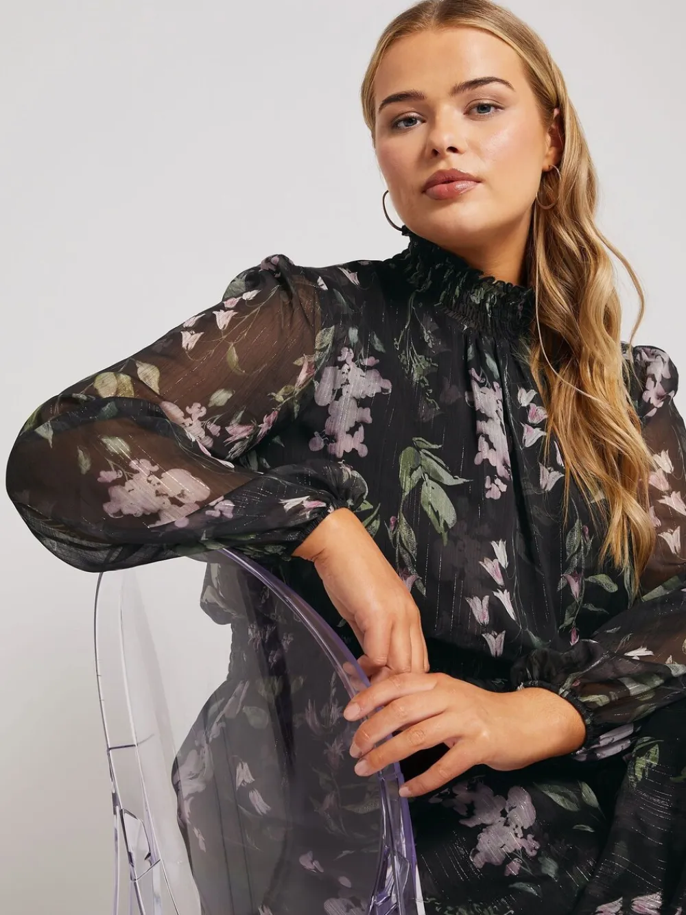 Fit Fashion Notes: Welcome elegance into your wardrobe with this must-have floral print collared dress. Made from a soft woven fabric, it features a shirred collar and waistband and long mesh cuffed sleeves. Pair with simple heels for a stylish evening look you will love. Why We Love It: The dress your weekend events can rely on. Features: Long mesh cuffed sleeve Floral print design Metallic thread detail Keyhole button fastening back Shirred collar and waistband Mini length High neckline Made from a soft woven fabric 100 polyester Length from approx: 106cm/41.7 Machine washable Model is 5ft10”/178cm and size UK 16/EU 44. Machine washable. 100% Polyester.