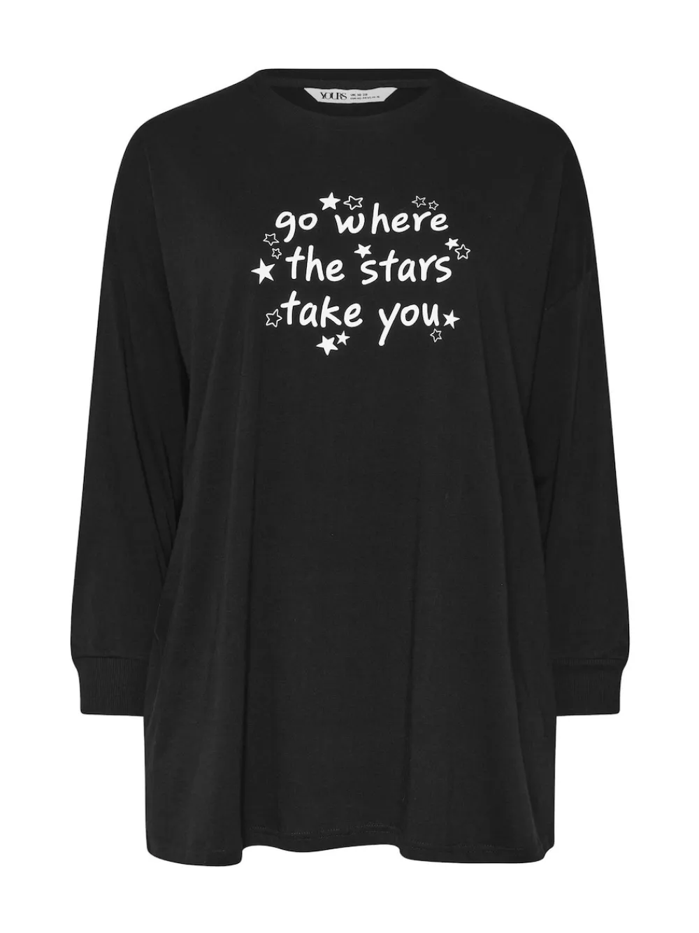 Yours Curve Black Stars Take You Long Sleeve Pyjamas and Tops Set Best