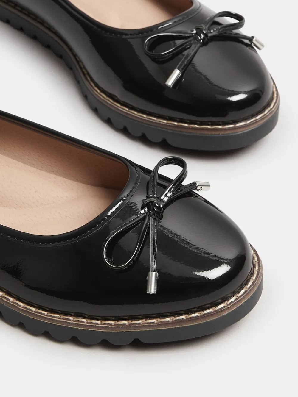 Fit & Fashion Notes: These must-have ballet pumps are the perfect addition to your footwear collection. In a wide fit and extra wide fit, they features a patent finish with bow detail and a padded sole for added comfort. Simply pair with all your go-to daytime looks for the perfect finishing touch.Features: Padded sole, Round toe, Patent finish, Slip-on style, Bow detail, Contrast stitching, Cleated sole, Size 4 heel height from approx: 1.5cm/0.5 , Extra wide EEE fit wide E fit Upper – 100% Leather. Lining – 100% Leather. Sole – 100% Synthetic rubber.