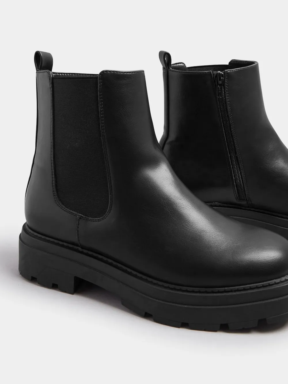 Yours Curve Black Wide Fit Chunky Chelsea Boots