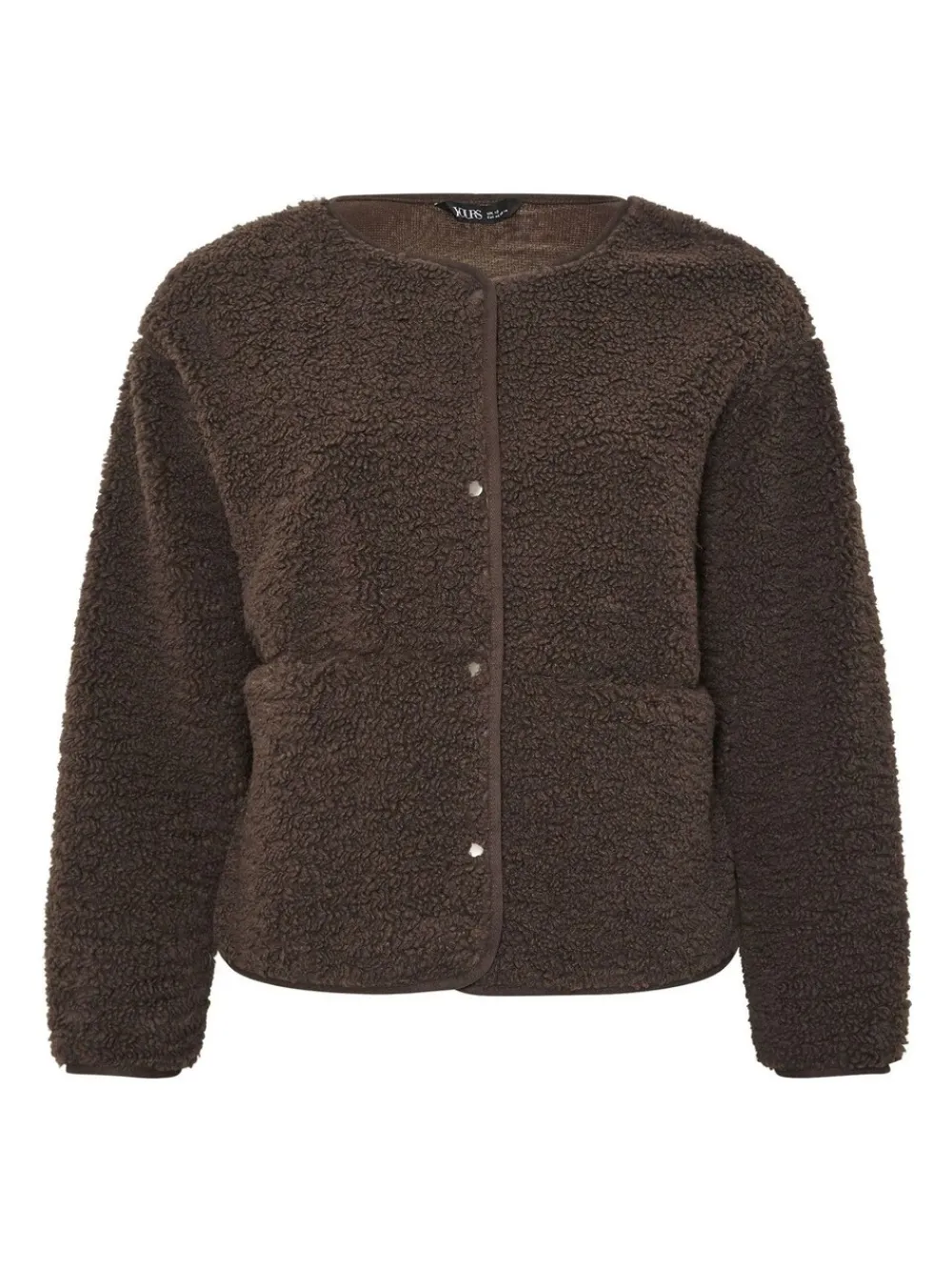 Yours Curve Collarless Popper Fleece Brown Clearance