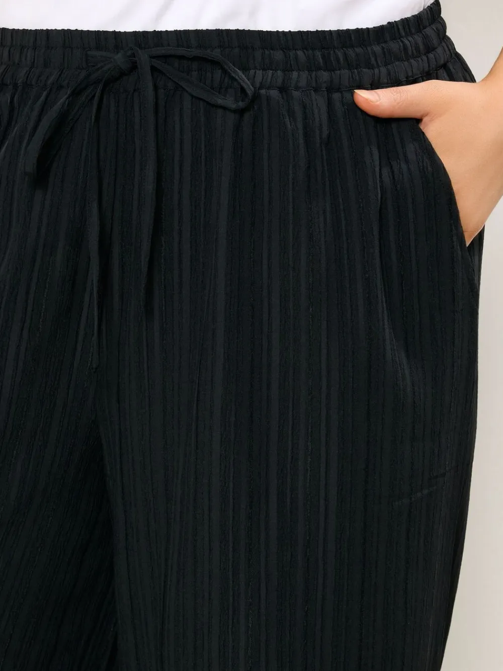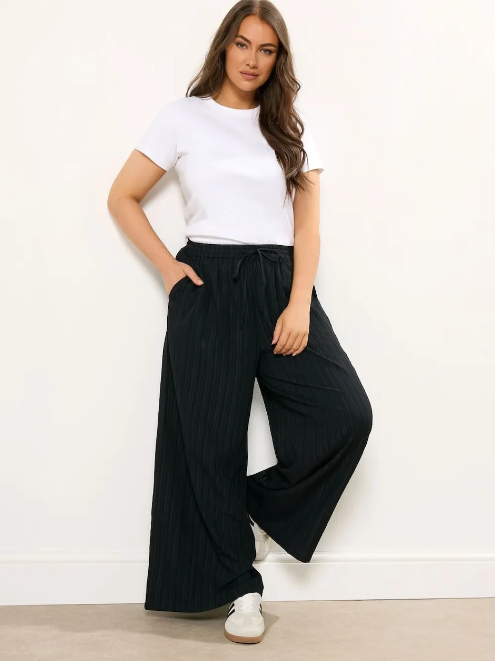 Yours Curve Crinkle Wide Leg Trousers Black Outlet