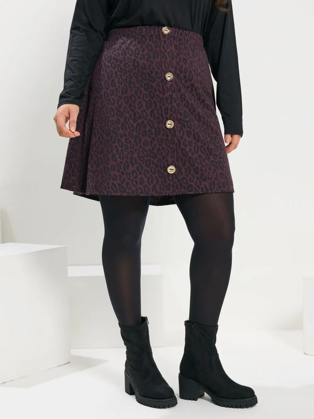 Fit & Fashion Notes: Amp up your skirt rotation this season with this new-in mini style! Made from a comfortable jersey fabric, it features a leopard print design, button front details, and an elasticated waistband for the perfect fit. Style with a jumper, tights, and boots for the perfect transitional look! Why We Love It: The skirt you’ll be reaching for on repeat! Features: Leopard print Button front details Mini length Elasticated waistband Made from a comfortable jersey fabric 95 polyester, 5 elastane Length from approx: 52cm/20.4 Machine washable Model is 5’10.5”/178cm and size UK 16/EU 44. Machine washable. 95% Polyester, 5% Elastane.