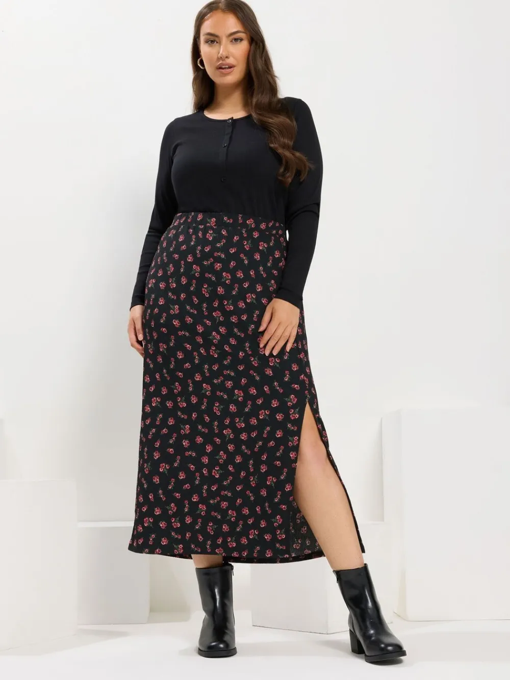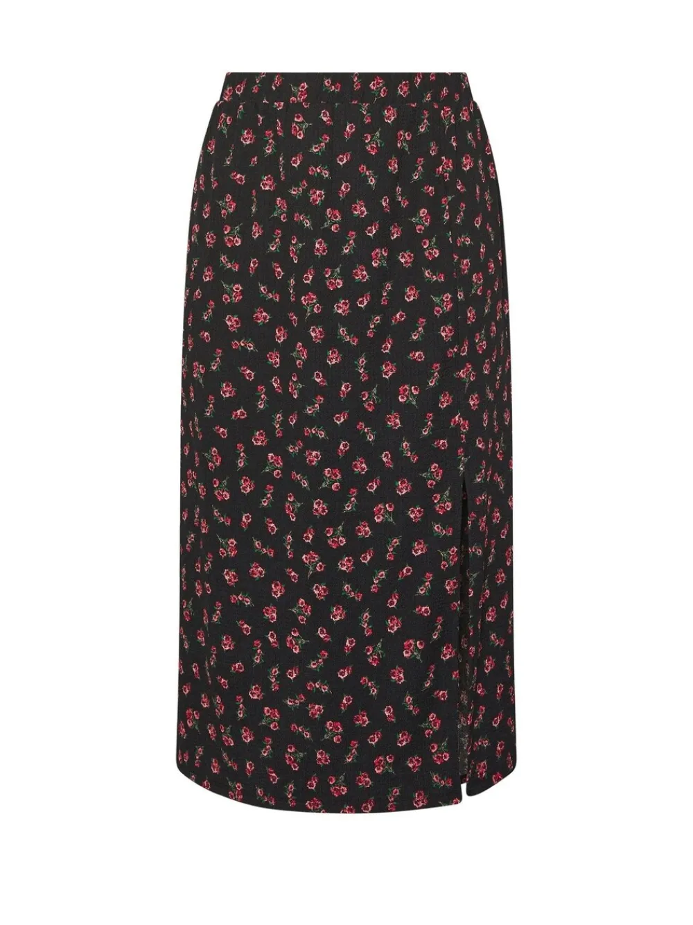 Fit & Fashion Notes:Give your transitional wardrobe a well-deserved refresh with this new-in midi skirt! Made from a textured jersey fabric, it features a rose print design, a side split hem, and an elasticated waistband. Team with a jumper and boots for a casual look you’ll be living in this season! Why We Love It: The skirt your wardrobe can’t resist! Features: Textured jersey fabric Rose print design Side split hem Elasticated waistband Machine washable. 95% Polyester, 5% Elastane.
