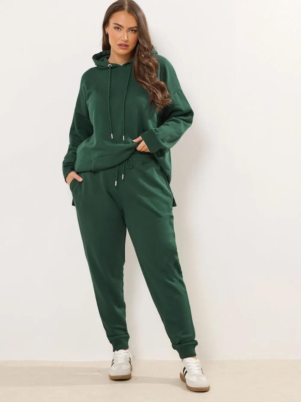 Fit & Fashion Notes: These new-in joggers are perfect for those chill days! Made from a comfortable jersey fabric, they feature a cuffed design, an elasticated waistband with an adjustable tie drawstring, and two side pockets. Team with the matching hoodie for a co-ord you’ll be living in this season! Why We Love It: Where comfort meets style! Features: Cuffed design Elasticated waistband Adjustable tie drawstring Two side pockets Made from a comfortable jersey fabric 65 cotton 35 polyester Inside seam measures: 75cm/29.5 Machine washable Model is 5ft 10.5”/178cm and size UK 16/EU 44. Machine washable. 65% Cotton, 35% Polyester.