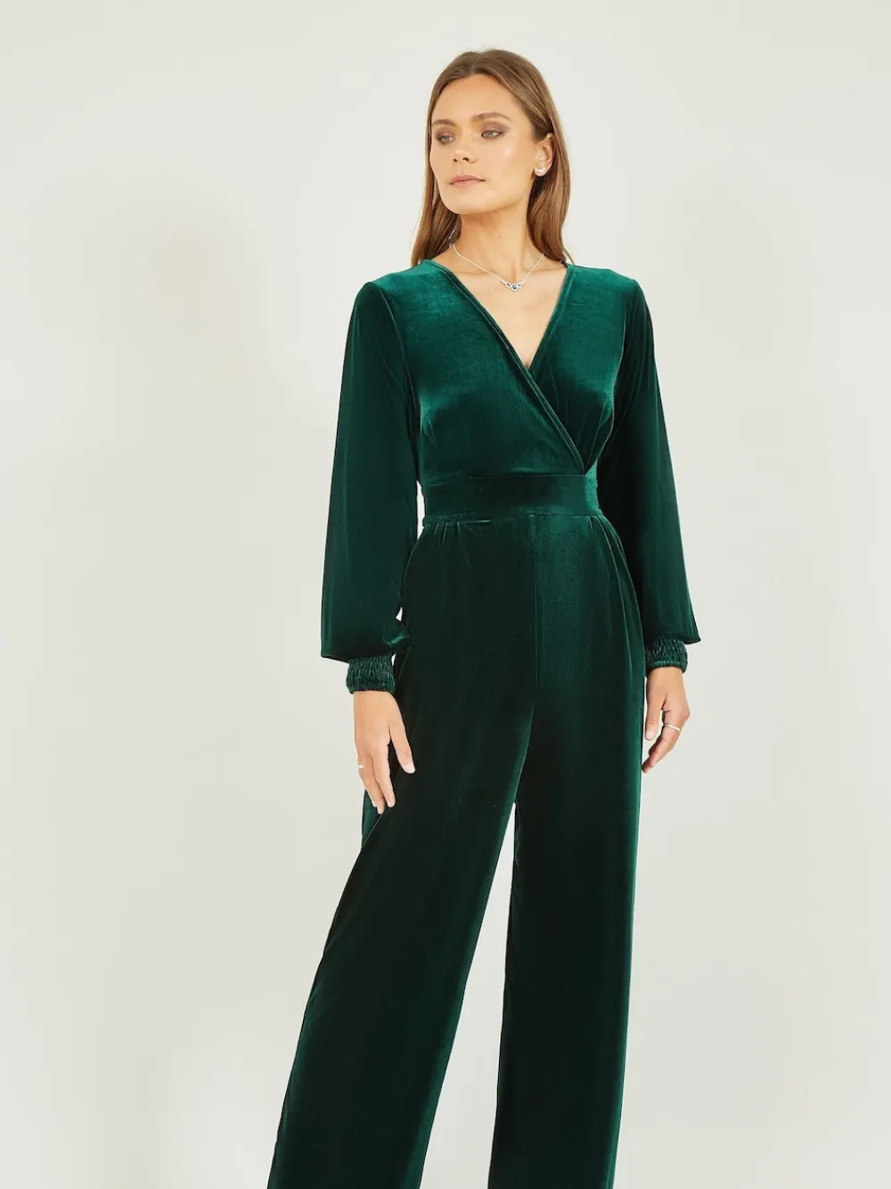 Get ready for the Christmas season in a fabulous floor-length jumpsuit. This one from Yumi has it all, long sleeves, a wrap neckline and a waited belt that ties in the back. The opulent velvet fabric is sumptuous and soft making this garment super comfortable as well as mega stylish. Regular inside leg length 58.5″ / 148cm. Machine washable. 95% Polyester, 5% Elastane.